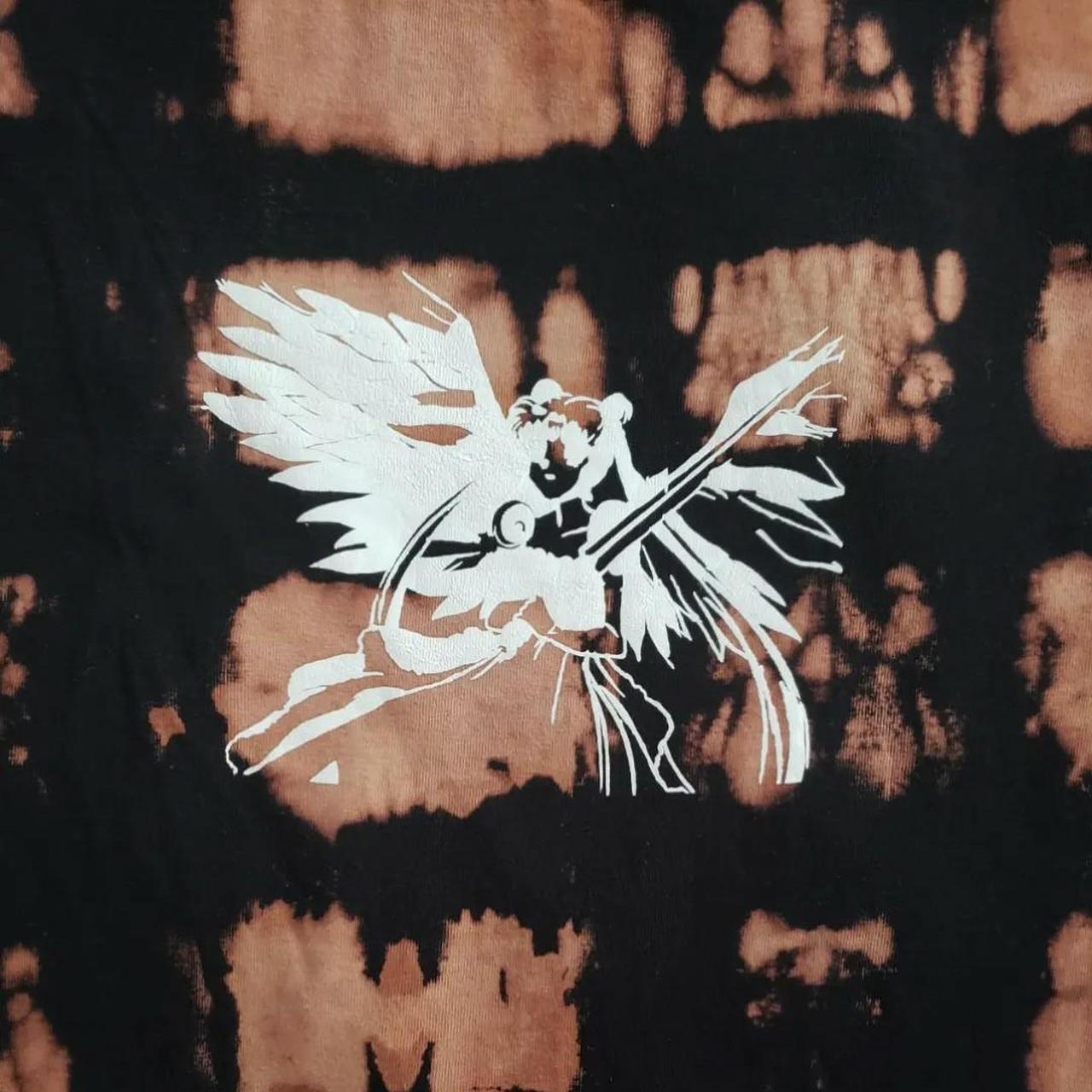 Hand dyed and hand printed, made with love. Shirt features Queen serenity character from Sailor Moon.
