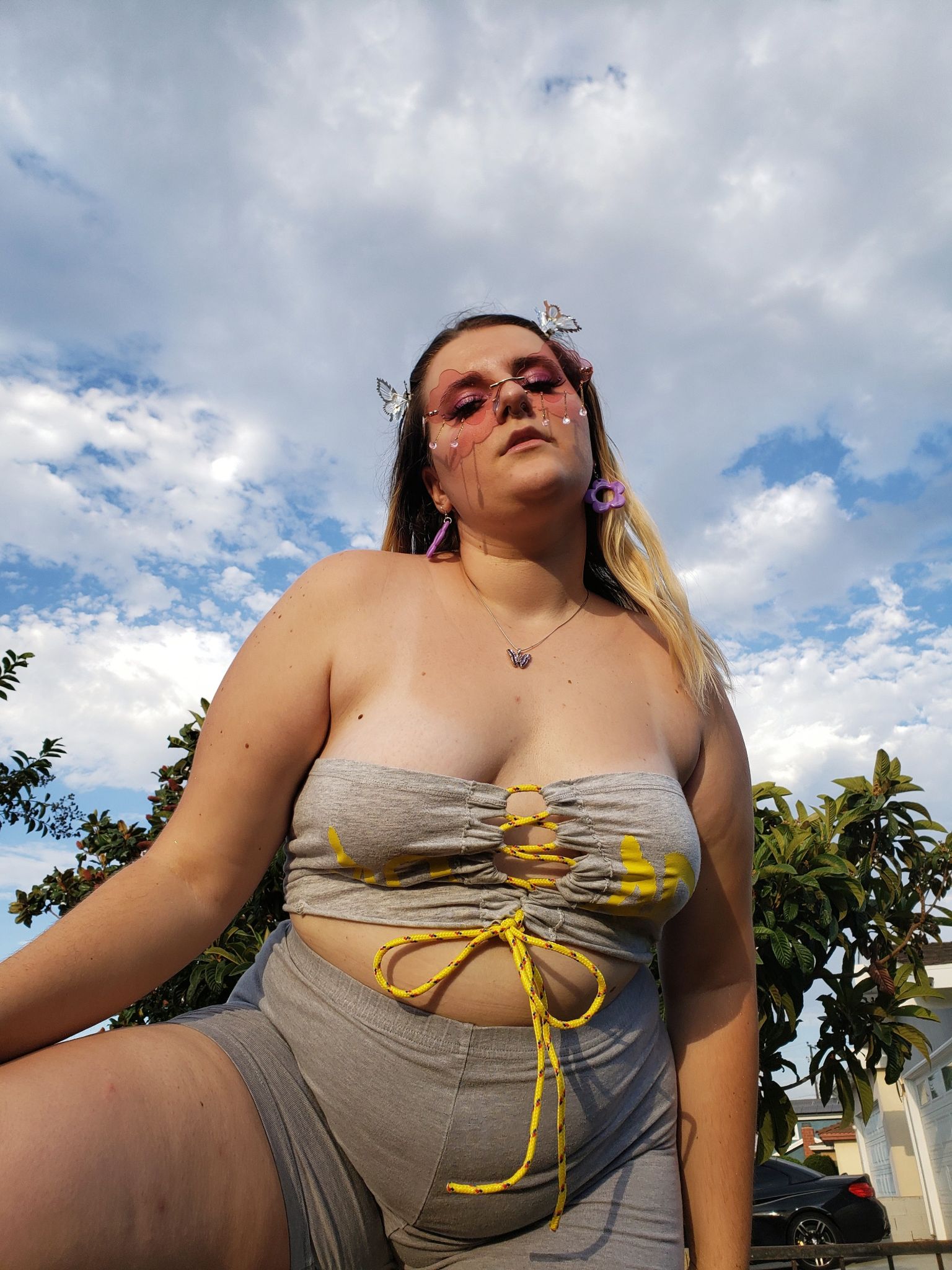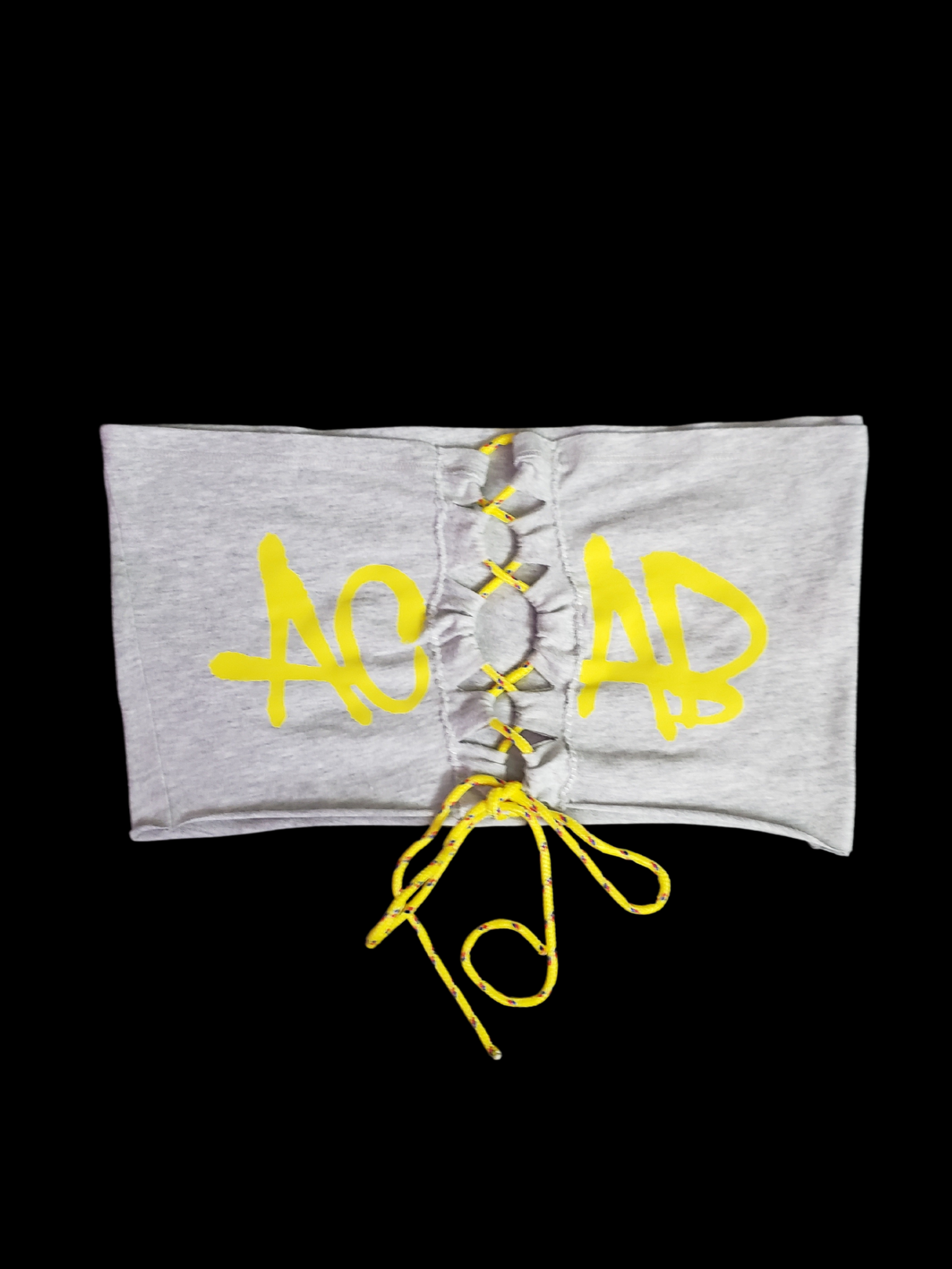 Handmade and hand printed. Stretchy Tube Top features a lemon Yellow "ACAB" text on front featured with yellow tie closure for fitting adjustments.
