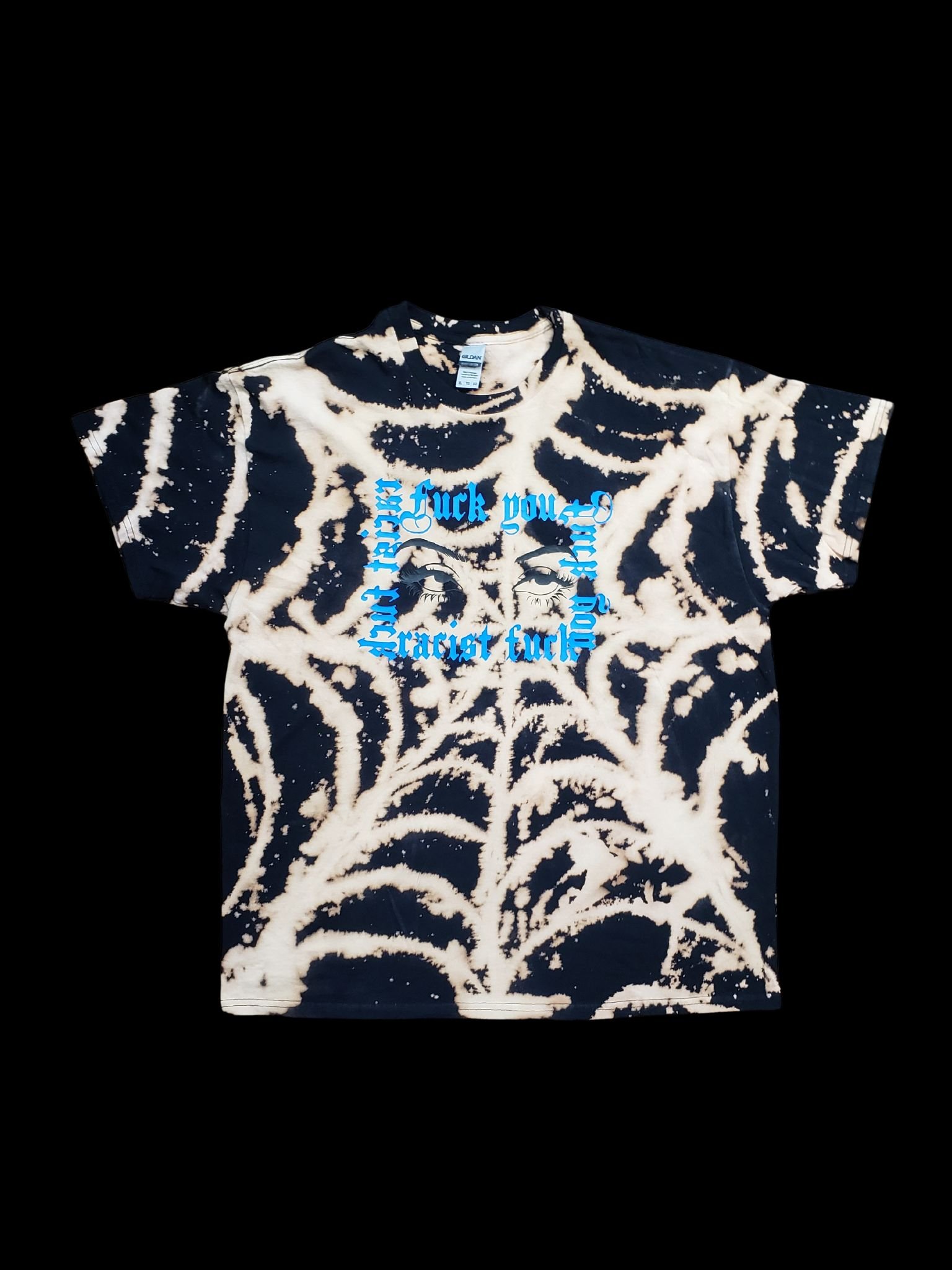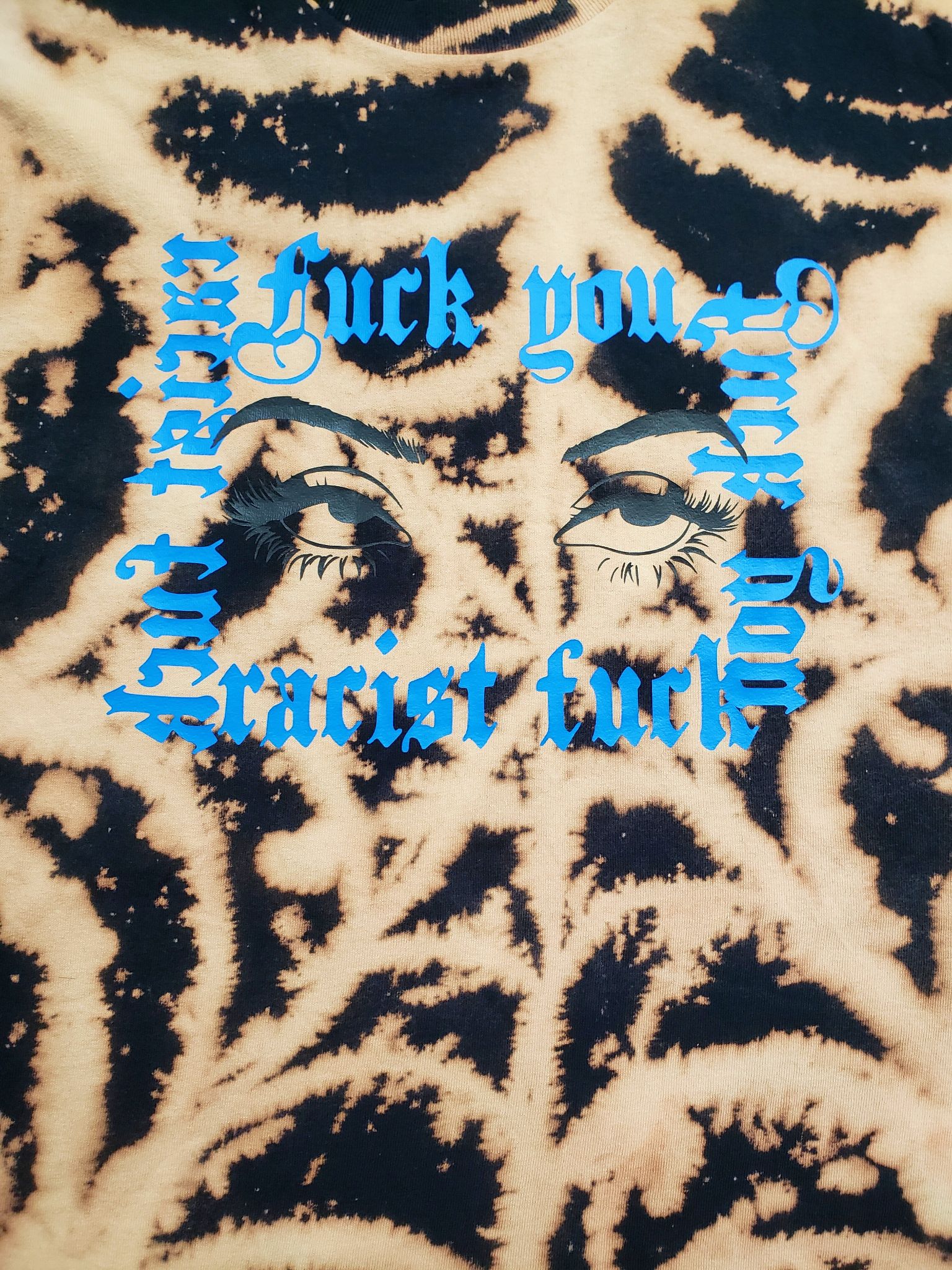 Hand dyed and hand printed, made with love. Shirt says "FUCK YOU RACIST FUCK" ! Size XL and slightly stretchy.