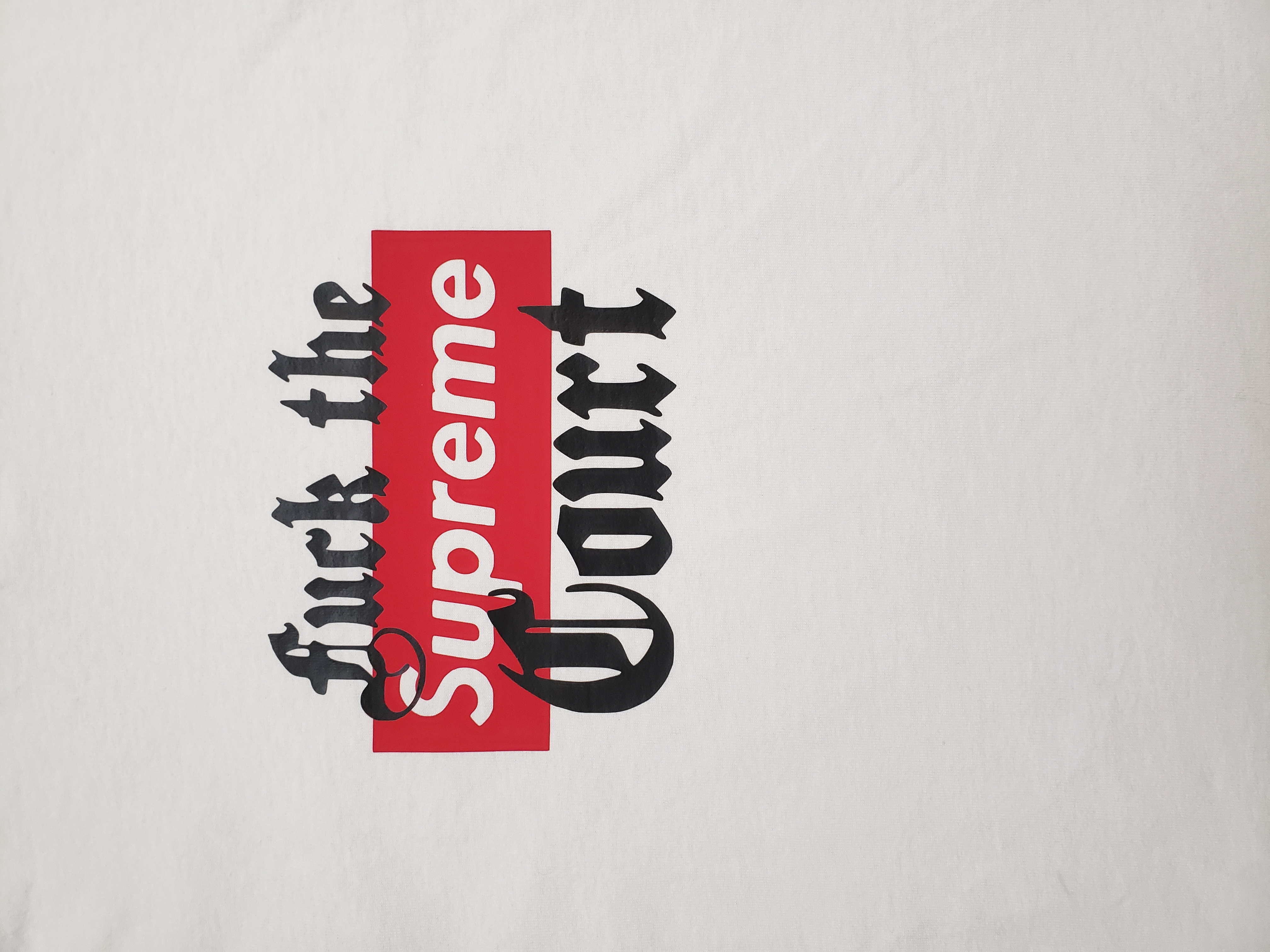 Hand dyed and hand printed, made with love. Shirt reads: "Fuck the Supreme court" (bootleg Supreme)
