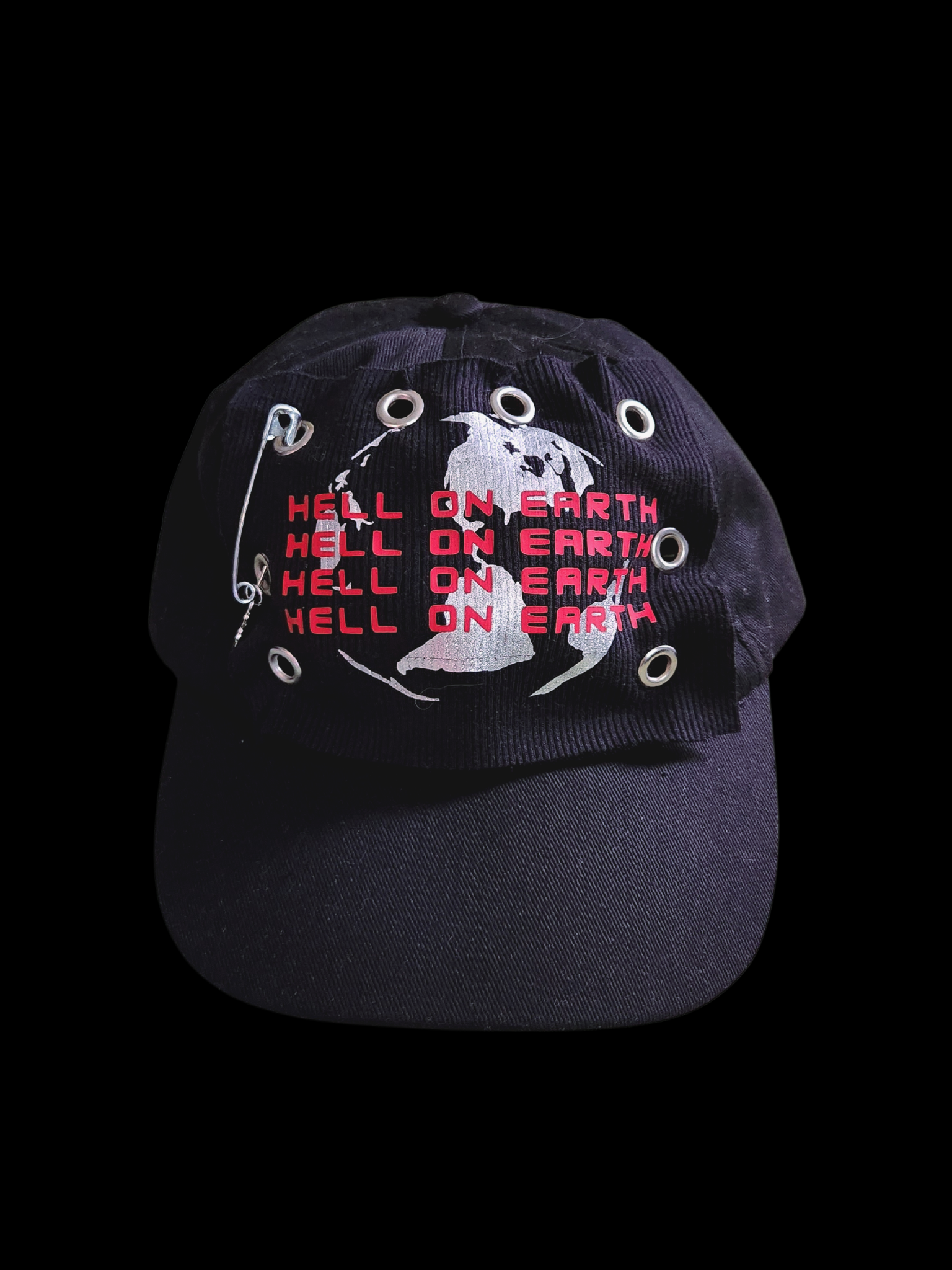 Features the words "HELL ON EARTH" in vinyl. Also features a grommet hold on the patch and comes with removable Cross Charm.