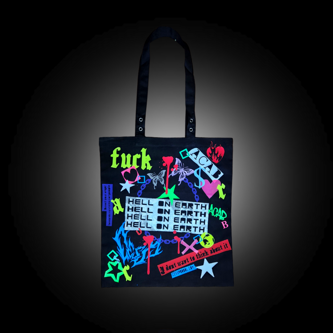 Features repurposed scap vinyl including some reflective pieces! Also features Grommets on handle !